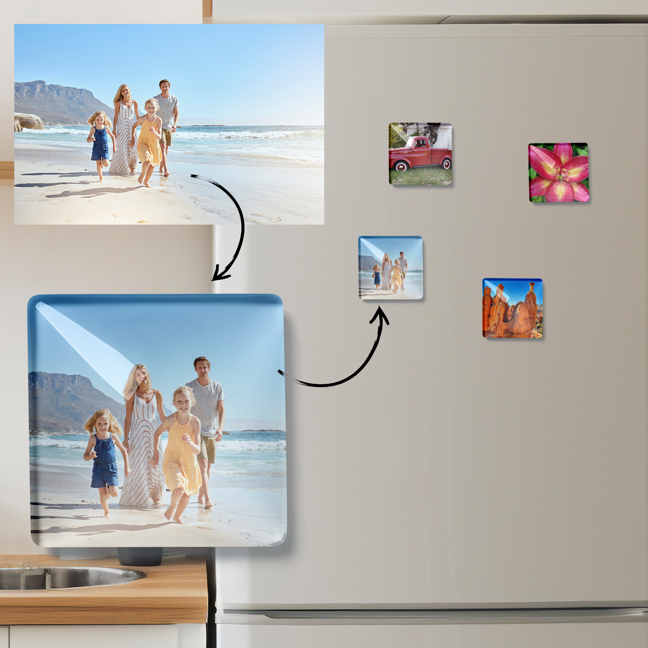 These custom photo magnets are perfect for displaying your favorite photos on your fridge, locker, or any other magnetic surface. They are made of high-quality acrylic with a 3 mm thickness, and have a high gloss white surface that is sublimated with your image. The printing effect of the picture is very vivid, and the magnets are cut by a CO2 laser machine or by a CNC machine, ensuring a precise and clean cut. The magnets have a protective film on the surface to protect them from scratches and damage. They are easy to apply and remove, and can be reused multiple times. These photo magnets are a great way to personalize your space and add a touch of creativity to your daily life.